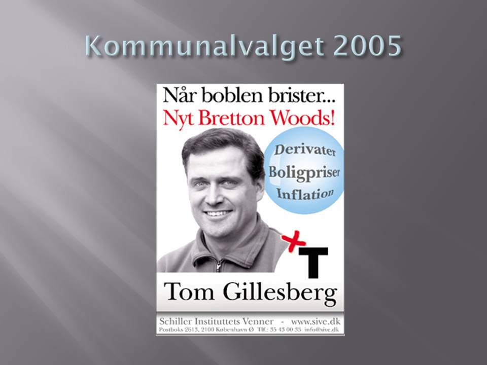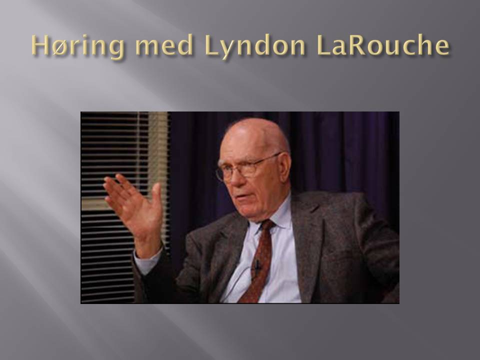LaRouche warned about the collapse There has been a widely circulated cliché in the media, and among politicians and economists, that no one could predict the current crisis, and that there is no alternative to pumping more money into the financial markets, but that is not true. For decades, Lyndon LaRouche and the Schiller Institute have warned against financial deregulation, and the shift from the physical economy to financial speculation, and the catastrophe that that inevitably would cause. For example, in the 2005 municipal elections, I tried to put the upcoming crisis on the political agenda, with the campaign, "When the bubble bursts... A New Bretton Woods." On July 25, last year, Lyndon LaRouche held a webcast from Washington, where he warned about a dramatic phase shift: We stood just in front of the disintegration of the entire international financial system. Three days later, the German IKB Bank collapsed under the weight of the bad "sub-prime loans." They were the snowball which started the avalanche. Afterwards, Lyndon LaRouche presented a three-point crisis plan for the U.S. We have not just warned about the depth of the crisis, but have also presented solutions, like when I ran for parliament, together with three other candidates, with the slogan, "After the financial crash: Maglev across the Kattegat." On January 17 this year, during testimony here before the Political-Economic Committee, I presented the immediate actions which ought to be set into motion in order to avoid the terrible consequences of an international financial collapse. Many of you may have felt that I exaggerated, or that the question was too big for parliament members to deal with, but there is no way around it. Parliament members have to have a clear picture of how a new financial system should be put together, and which actions we must take to protect our economy and population.