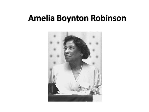 meeting with Amelia Boynton Robinson, The speech by Amelia Boynton Robinson (introduced by one of her poems) can be heard here.