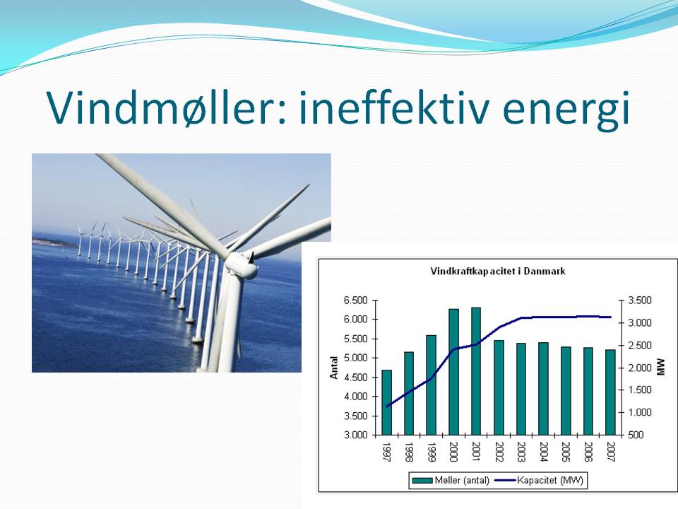 A-kraft er løsningen Alle bekymringer om a-kraftens problemer har vist sig at være grundløse. Vesteuropæiske kraftværker har i årtier leveret billig og pålidelig strøm, og en ny generation af a-kraftværker kan nu bygges, som ikke behøver tidligere tiders ekstreme sikkerhedstiltag, da de ikke har en reaktorkerne, der kan nedsmelte. I PBMR-reaktoren er det radioaktive brændsel placeret i kugler på størrelse med en tennisbold, der producerer varme, når temperaturen ikke er for høj. Stiger temperaturen, ophører kernereaktionerne. I takt med den fortsatte udvikling har atomaffaldet også i stigende grad vist sig som et værdifuldt råstof, i stedet for at være ubehageligt højradioaktivt affald, der skal gemmes væk i titusinder af år. Og hvis vi er med i en effektiv serieproduktion af a-kraftværker, kan vi reducere produktions- og byggetiden, og være med til at sikre verden langt billigere elektricitet i meget større mængder – uden øget forurening. Det er nødvendigt, hvis hele jordens befolkning skal have den udvikling, der kan give dem en anstændig levestandard og et menneskeværdigt liv! Problemet med vindmøllestrøm er ikke blot, at det er langt dyrere at producere end a-kraftstrøm. Samfundet er nødt til at kunne producere al sin strøm uden vindmøllerne, da der ind imellem er vejr, hvor de ikke snurrer. Produceres der vindmøllestrøm, er den ikke blot dyrt købt for forbrugerne, men betyder også, at kraftværkerne bruger en mindre del af deres kapacitet, og får en højere elpris (de faste udgifter er jo stadig de samme, selv om der produceres mindre strøm). Politikerne er måske ligeglade, fordi den øgede udgift betales af virksomhederne og forbrugerne, men for økonomien som helhed er det en rigtig dårlig forretning. Der findes nogle som mener, at det er godt med dyr strøm, fordi vi så bruger mindre af den, men det er resultatet af en ureflekteret nulvæksttankegang. Der er nemlig en direkte sammenhæng mellem et samfunds levestandard og dets strømforbrug. Forsøger vi at undgå et øget elforbrug gennem at investere i energibesparende foranstaltninger, koster det ressourcer, der i stedet kunne være brugt på andre ting som f.eks. bedre leveforhold, skoler, hospitaler, infrastruktur etc. Men indførelsen af a-kraft er ikke blot et spørgsmål om at dække vores energibehov. Der er en kvalitativ forskel på energien fra en vindmølle og den energi, der bliver produceret i et kernekraftværk. Energien i et a-kraftværk har en langt højere energigennemstrømningstæthed end f.eks. solceller eller vindmøller, og giver os derfor langt større muligheder. Det er ikke et stort energiforbrug, der gør en laser effektiv, men derimod at den tilførte energi afsættes meget præcist på et lille areal - med en høj energitæthed til følge (ligesom en skarp kniv behøver mindre kraft for at skære end en sløv).
