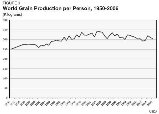 De popul\E6re bortforklaringer p\E5 f\F8devarekrisen, som n\E5r medierne siger, at den skyldes en fejlslagen h\F8st i Australien og at inderne og kineserne er begyndt at spise mere, eller n\E5r Verdensnaturfondens grundl\E6gger prins Philip h\E6vder, at krisen skyldes overbefolkning, er kynisk manipulation. Ser man p\E5 den globale kornproduktion per person over de seneste 50 \E5r, frem til slutningen af 1980'erne, er det tydeligt, at samtidigt som befolkningstallet steg, \F8gedes produktionen langt mere, fordi den ikke blev overladt til det \94frie\94 marked, men blev prioriteret med programmer for national f\F8devareselvforsyning, \F8rem\E6rkede kreditter til landbrugsinvesteringer og produktionspriser for landm\E6ndene.[ii]