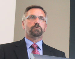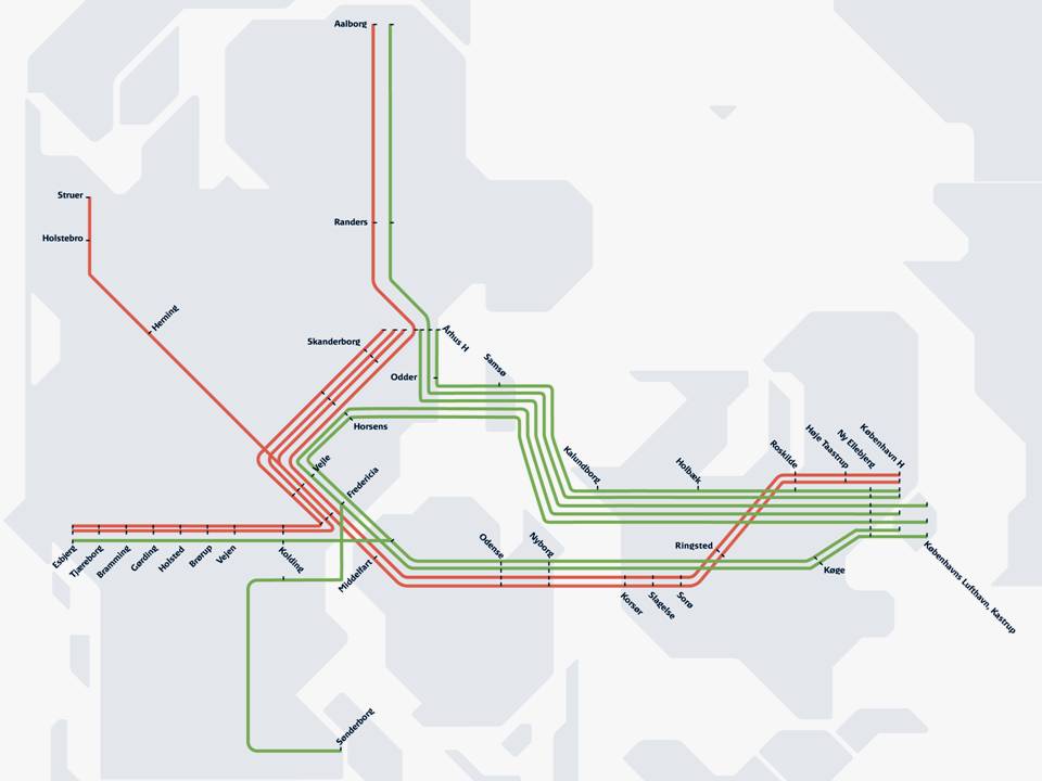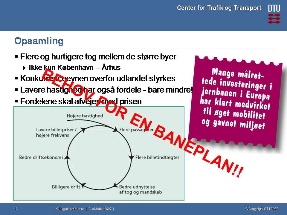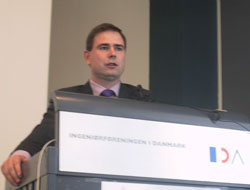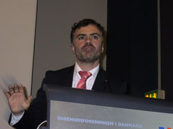 Trafikforsker Alex Landex fra Danmarks Tekniske Universitet præsenterede visionerne om en konventionel højhastighedsforbindelse mellem Århus og København, der kan skære rejsetiden ned til ca. 1 time. Indsættes eksempelvis det italienske kurvestyrede højhastighedstog Pendolino ydermere på de øvrige hovedstrækninger, kan rejsetiden til de andre storbyer som f.eks. Aalborg og Esbjerg også reduceres. Men han påpegede bagdelen ved at sætte højhastighedstog på det allerede eksisterende skinnenet. Det er meget nedslidt, og udnyttelsesgraden er i forvejen den højeste i Europa. Der er ikke plads til ret mange flere tog, og overhaling af langsomt kørende godstog er allerede et kæmpeproblem. Det har sænket hastigheden til den næstlaveste i Europa, lidt bedre end bjerglandet Schweiz. Et højhastighedstog på det danske skinnenet kan hurtigt komme til at minde om en Ferrari bag en traktor på en markvej, sagde Alex Landex (klip på billederne for at se dem i stor format). |