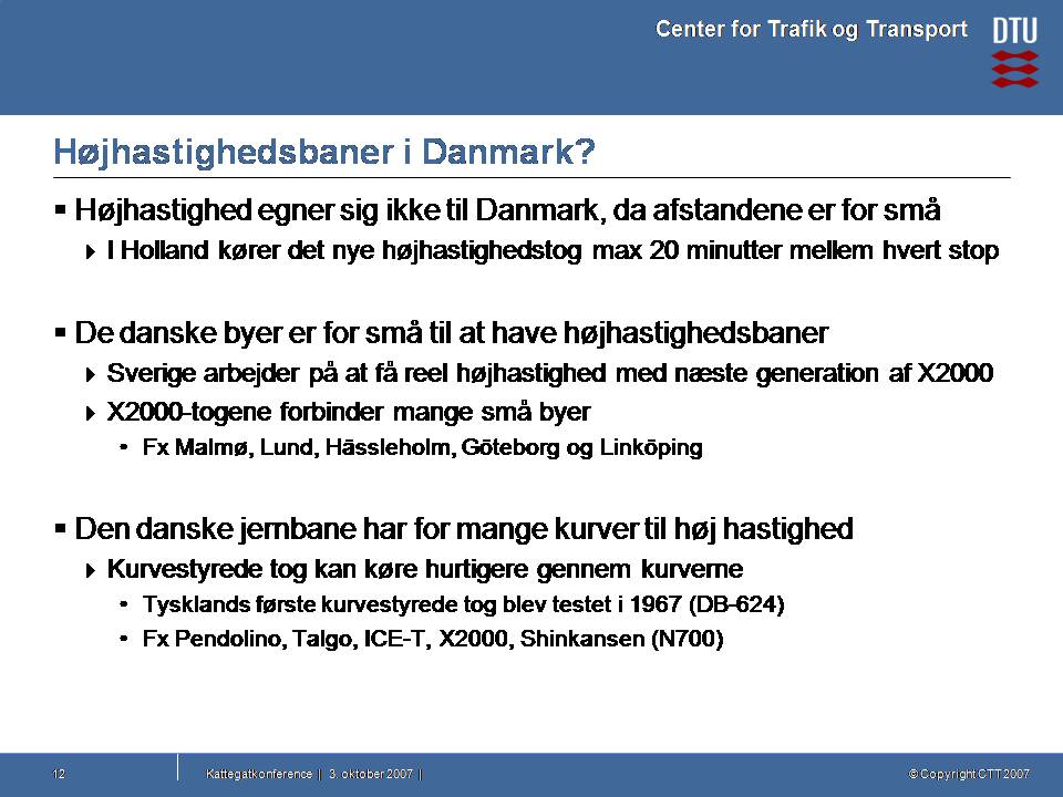 Onsdag den 3. oktober 2007 Ingeniørhuset, København Konferencens formål var at fremlægge og diskutere perspektiverne for, hvilken udvikling en fast forbindelse over Kattegat vil medføre ved at kæde landets to største vækst- og videnscentre sammen til en dansk metropol i europæisk målestok. Der var en betydelig repræsentation af kommunal-, regional- og folketingspolitikere samt embedsmænd blandt konferencens 180 deltagere. På denne side findes lydfiler af talerne, udvalgte illustrationer og speciel dækning af Schiller Instituttets indlæg og spørgsmål om magnettog over Kattegat. Dækning i oktobernummeret af Schiller Instituttets nyhedsbrev Prometheus