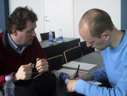 Tom Gillesberg interviewes efter diskussionen af en journalist fra Jyllands-Posten |