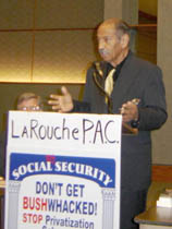 Kongresmedlem John Conyers stiftede oprindeligt bekendtskab med de unge fra LaRouches Ungdomsbevægelse under partikonventet i Boston i juli sidste år. Her stod de for et markant opløftende indslag med både musiske og politiske interventioner. Da Conyers påtog sig ansvaret for at undersøge de mange rapporter om manipulation med stemmeafgivelsen under præsidentvalget i delstaten Ohio (hvor en sejr ville have gjort demokraten John Kerry til USA's præsident -red.) opstod et uformelt samarbejde med de unge ved de mange borgermøder, som blev afholdt rundt om i delstaten (se også Prometheus feb.-mar. 2005). Da præsident Bush kort efter valget indledte sit ideologiske korstog imod Franklin D. Roosevelts vigtigste politiske arv, det offentlige invalide- og folkepensionssystem Social Security, var Conyers blandt de allerførste til at gøre modstand. Og sammen med et voksende antal demokratiske tillidsfolk og repræsentanter har han accepteret LaRouches udfordring til at sætte spørgsmålet om Social Security i sammenhæng med en løsning på den voksende økonomiske krise.
