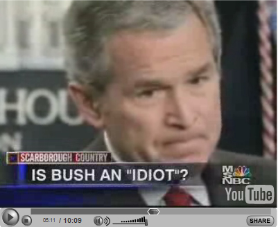 Primærvalgresultatet i Connecticut og adskillige amerikanske meningsmålinger, der viser, at republikanske kandidater står til at tabe stort ved det kommende midtvejsvalg til Kongressen i november, har fået en desperat præsident Bush ud på en landsdækkende turné for at samle støtte til sin fortsatte krigsførelse i Mellemøsten. Men det tegner ikke godt. Et hastigt voksende antal republikanske kandidater og tillidsfolk har travlt med at distancere sig fra den upopulære præsident. Den 16. august fandt det fhv. republikanske kongresmedlem fra Florida, Joe Scarborough, det nødvendigt at afsætte 10 minutter af sit populære tv-program, Scarborough Country, til at finde svar på spørgsmålet: »Er Bush en idiot?« I et efterfølgende telefoninterview fortalte Scarborough, at han valgte at bringe indslaget, fordi han hørte stadig flere af sine republikanske venner stille spørgsmålstegn ved præsident Bush' evner til at lede landet.