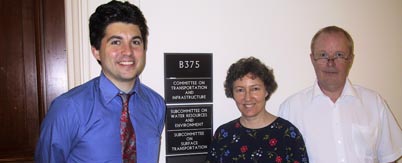 Michelle og Poul Rasmussen sammen med Paul Marino (t.v.) fra LaRouches Ungdomsbevægelses kontor i Washington efter et møde med politiske rådgivere for Transport og Infrastrukturkomiteen i Repræsentanternes Hus.