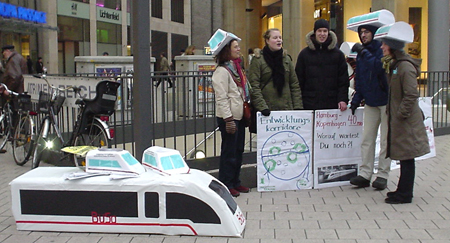 De danske aktivister fra Schiller Instituttet og LYM tog kampagnen for magnettog og store infrastrukturprojekter ud på gader og torve i Hamburg. Det vakte stor opsigt og interesse.