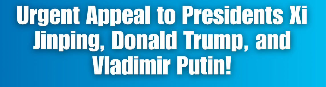 Hasteappel til præsidents Xi Jinping, Donald Trump og Vladimir Putin!