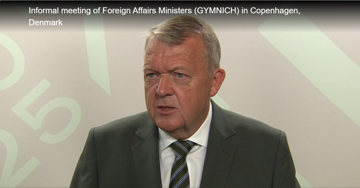 KØBENHAVN, 31. august 2025 (EIRNS) – Forud for det uformelle møde mellem de 27 EU-udenrigsministre i København den 30. august talte den danske udenrigsminister Lars Løkke Rasmussen til journalisterne om at være vidne til “en humanitær katastrofe af helt vilde dimensioner. Det skal stoppe. Vi har talt lidt til [Israels] døve ører, og derfor er tiden kommet til, at vi nu sætte handling bag,” herunder at sanktionere ministre, der støtter ulovlige bosættelser, Horizon-delen af handelsaftalen mellem EU og Israel, og nu at suspendere aftalen som helhed. Han opfordrede også til at genåbne den medicinske korridor fra Gaza til Østjerusalem for at behandle hårdt sårede patienter der.